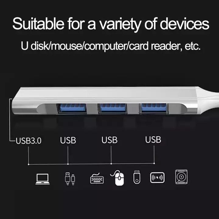 • 4-in-1 USB Hub, 1 3.0 USB-A port, and 3 2.0 USB-A ports make it easier to connect different devices at the same time.