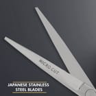The slightly convex blades with a flat cutting angle offer very good sharpness. The one-sided micro-serration of these hair scissors prevents the hair from slipping away. Made of special Japanese stainless steel, this hair scissors offers relia...