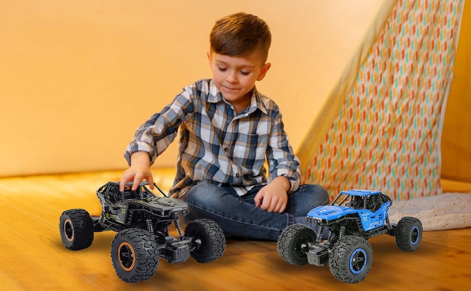 Introducing the Wembley Remote Control Rock Crawler, a high-speed 1:18 RC car designed for kids who crave adventure and excitement! This powerful RC car is equipped with an electric brushed motor that provides adequate driving power, ensuring a thrilling experience whether you're driving on flat fields, sand, or even small hills. With four wide driving wheels, this car is perfect for both indoor and outdoor action.