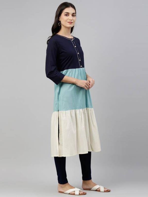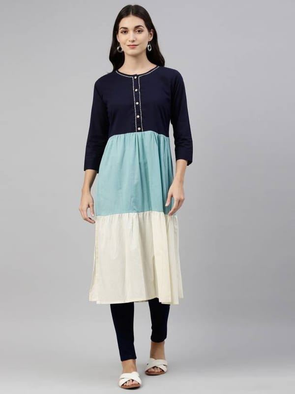 Women Embellished Pure Cotton Straight Kurta (Dark Blue)