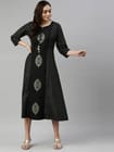 64e9aeae6c4e95f01e293bb9Women Polka Print Pure Cotton A-line Kurta (Black)