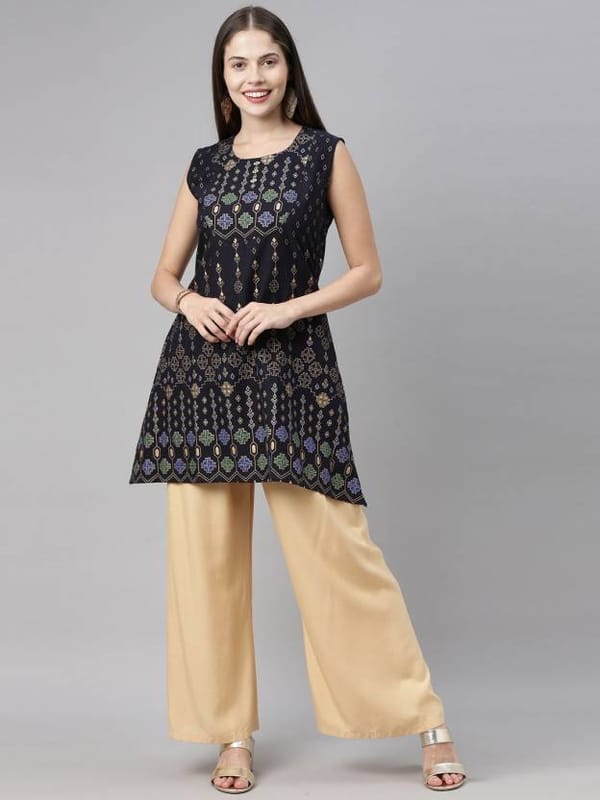 64e997cb25a630927df1540cWomen Printed Pure Cotton Straight Kurta (Dark Blue)