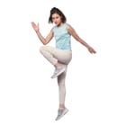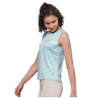 Women's scoop neck sleeveless tank Top with chest print.