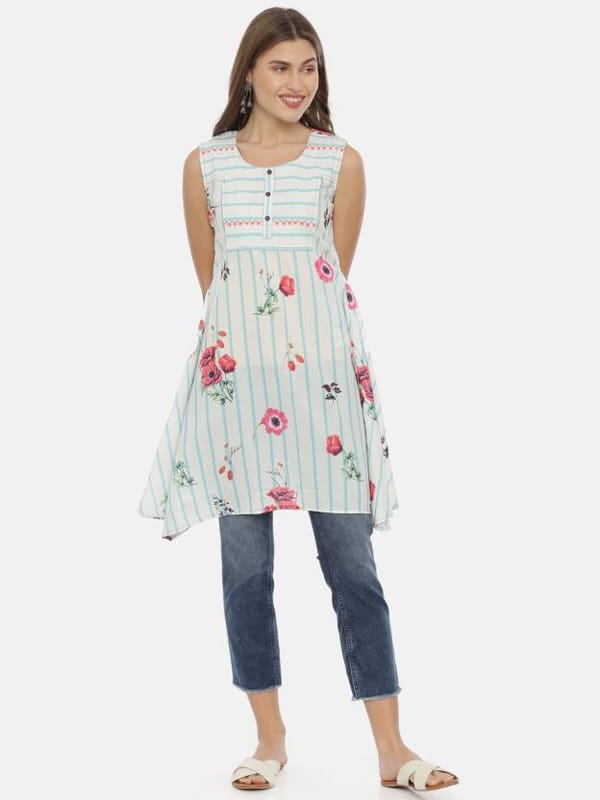 Women Striped Viscose Rayon Straight Kurta (White)