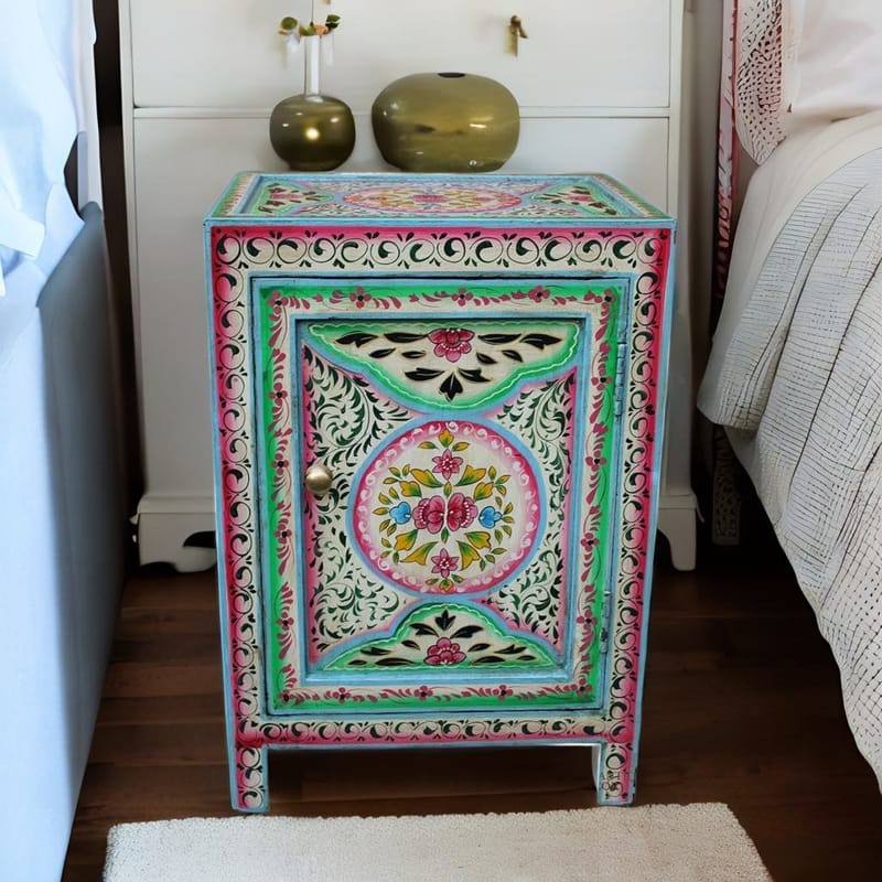 Hand Painted Storage Cabinet Made By Skilled Artisans Of General India. Our arch-adorned, blue-hued Storage cabinet from India takes its inspiration from the ornate floral motifs of 16th-century Mughal paintings.