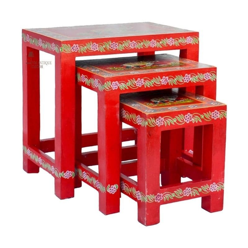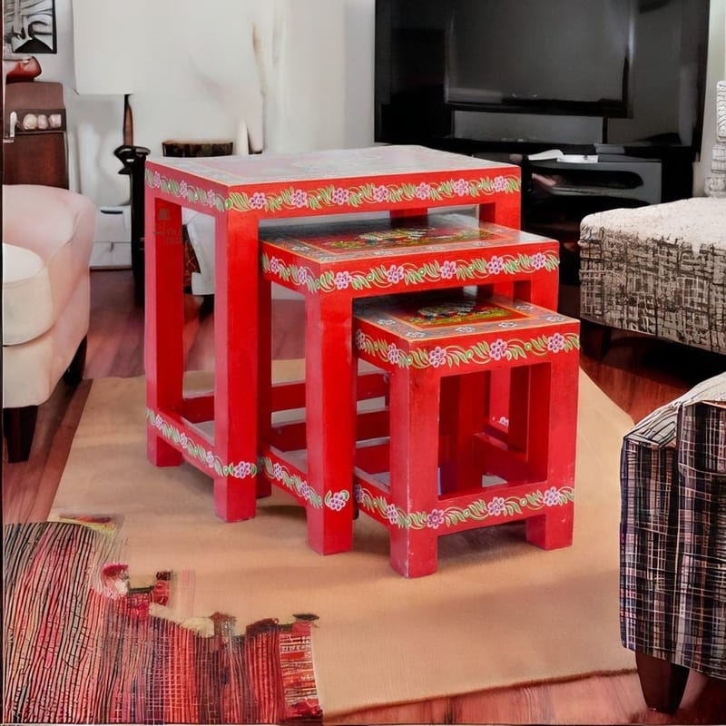 In which he conceals his floral design and takes the nesting stool towards beauty. This item is fully finished after being handpainted polished. In our homes, it is used as a coffee table or bed side at any corner of our house. It improves the beauty of our house and provides a seat for the guests coming to the house.