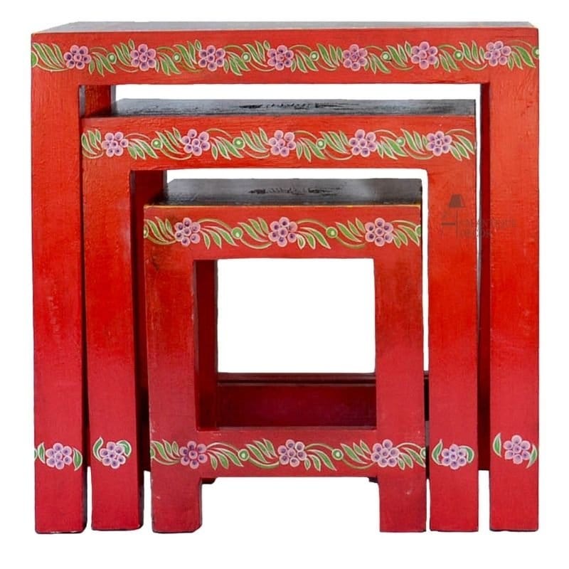 Made by skilled craftsmen of India. Handmade item. It was crafted from Mango wood wooden nesting stool of India and made by the artisans with a color over it, later hand painted by the hands of artisan.