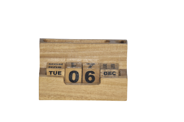 Wooden pen stand with a calendar and card holder, This product has a log of space that can fit your pen and cards and work as a calendar too