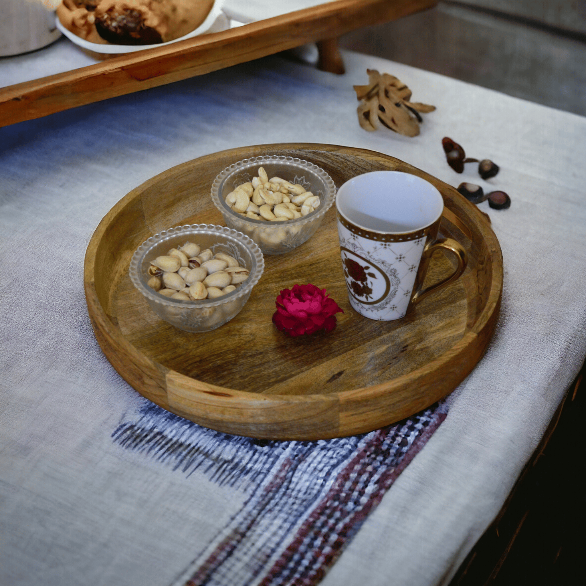 - BEAUTIFUL DECORATIVE TRAY FOR HOME DECOR - Complement your home decoration seamlessly with the gorgeous GIFTACITY round wood tray! Besides...