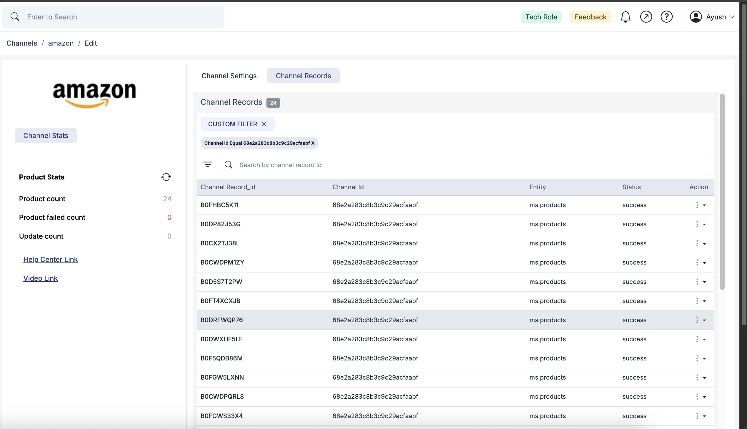 “Channel Records” contains the status of the migration of each product entry. Channel Records is updated within a few minutes after a new entry.