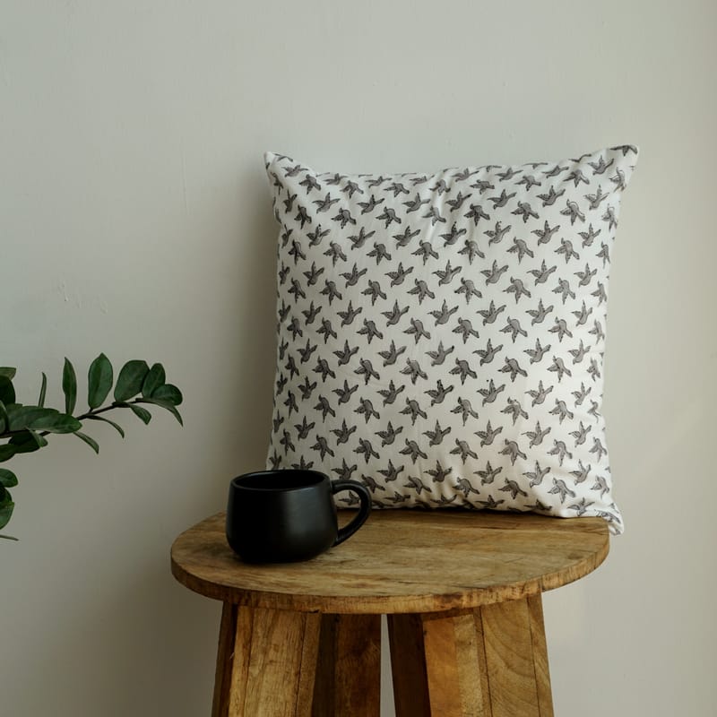 Add natural serenity to your home decor with our meticulously crafted Bird Print Hand Block Cushion Cover. Elevate your space with the grace and beauty of birds, inviting a touch of elegance and tranquillity into your living space.